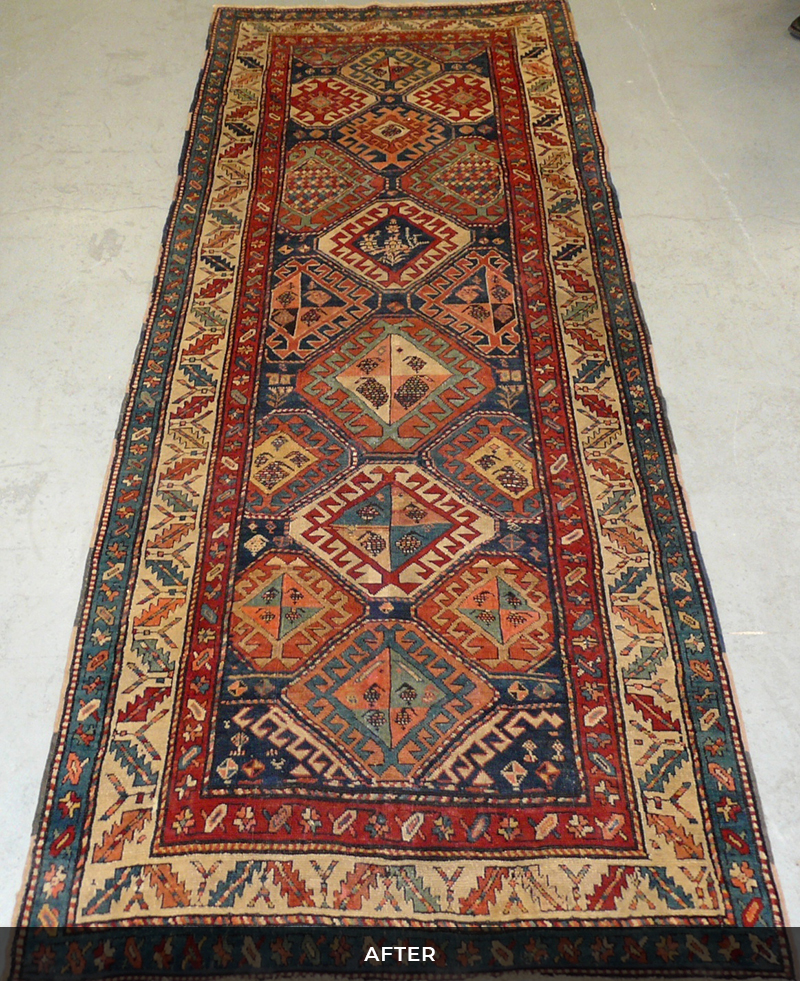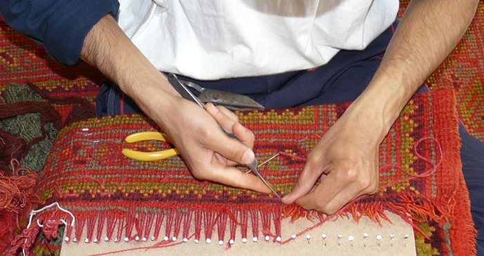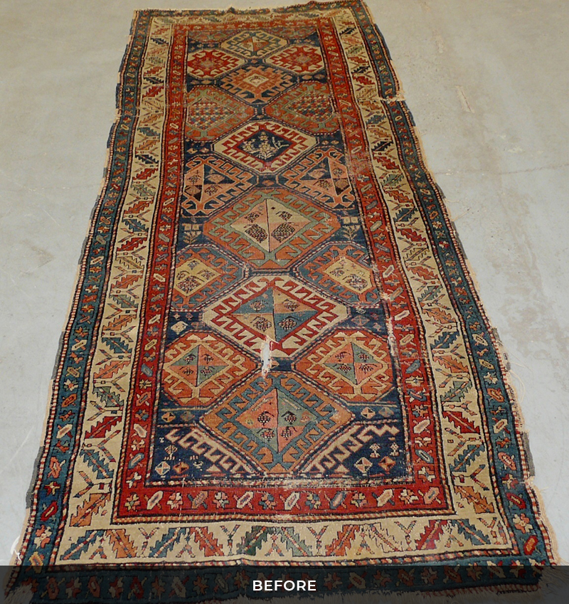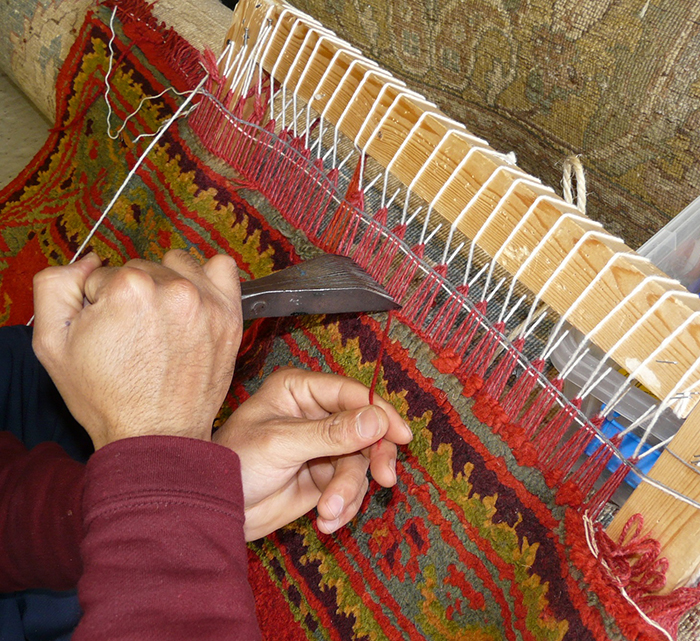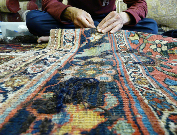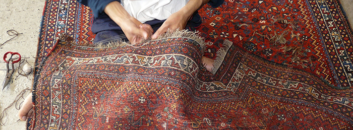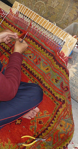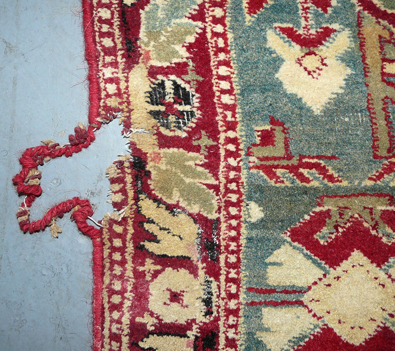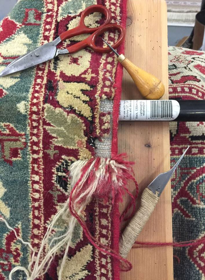 We provide a full repair service whether it is a simple "stopping" of the ends or repairing of the fringe or significant re-piling, repairing of tears, holes and moth damage. This is all done by our team of expert repairers.